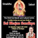 Sai Bhajan Sandhya by Rana Gill on August 12, 2023 from 8:15 pm onwards.